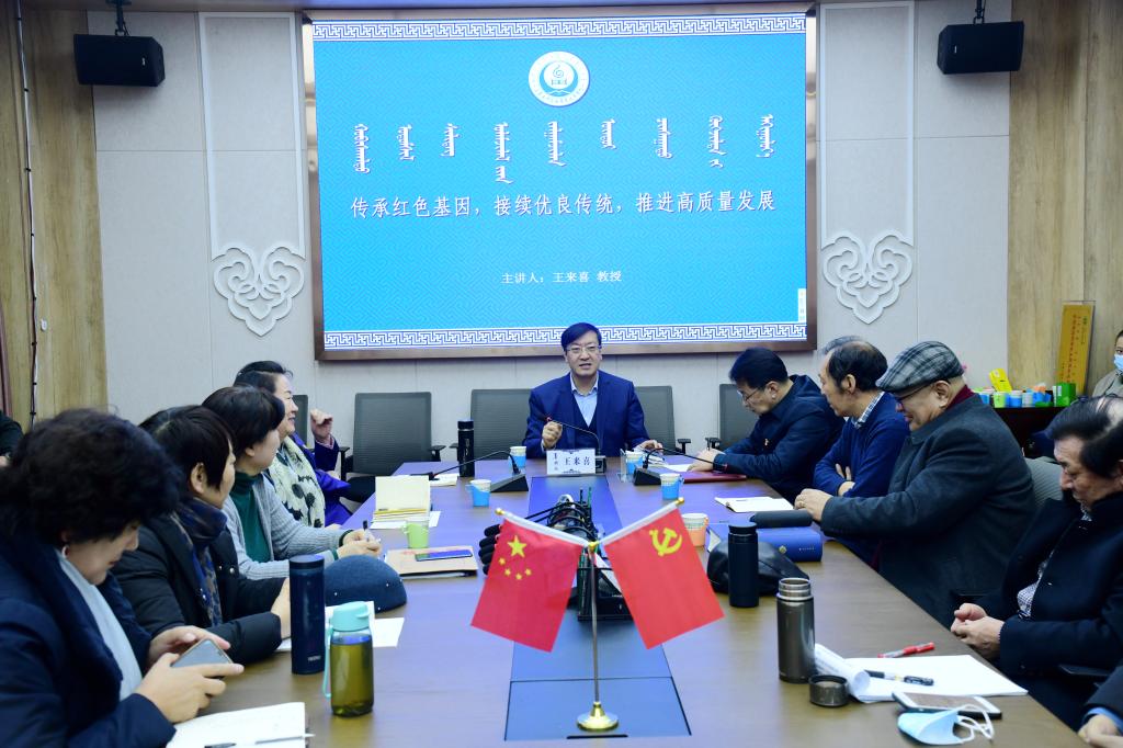 王来喜从“智慧之源”谈起,结合实际谈到智慧之源的理解和认识,认为智慧源自生活、源自实践。他以颜色文化的含义和象征为脉路、以家的概念和地位为切入点、以奶茶现象为案例,以讲课标准为目标,解析了习近平总书记在中央民族工作会议上重要讲话精神,回顾了中国共产党团结带领全国各族人民取得的辉煌成就,阐述了如何推进高质量发展的问题。