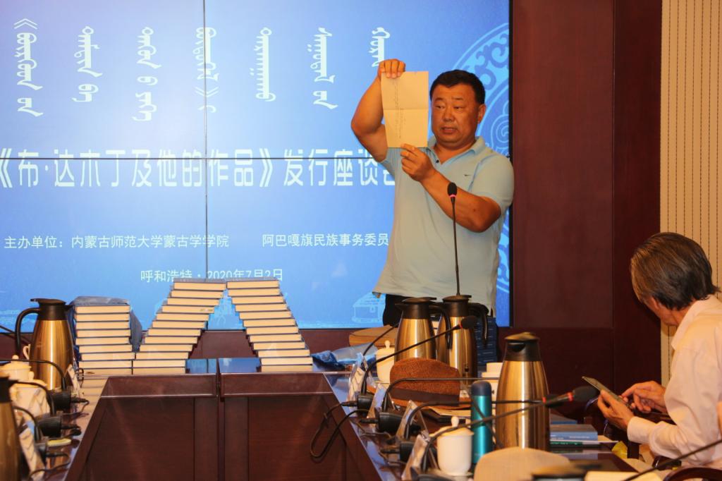 与阿巴嘎旗民族事务委员会主办的《布·达木丁及他的作品》(以下简称《作品》)发行座谈会在呼和浩特举行。本次会议旨在回顾布•达木丁老师的学术研究光辉业绩,尤其是对蒙古语言文字的贡献,并以此总结经验,为内蒙古蒙古语言文字事业的繁荣发展提供宝贵经验和独特启示。