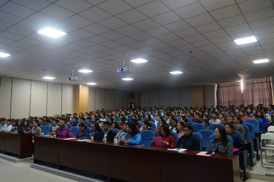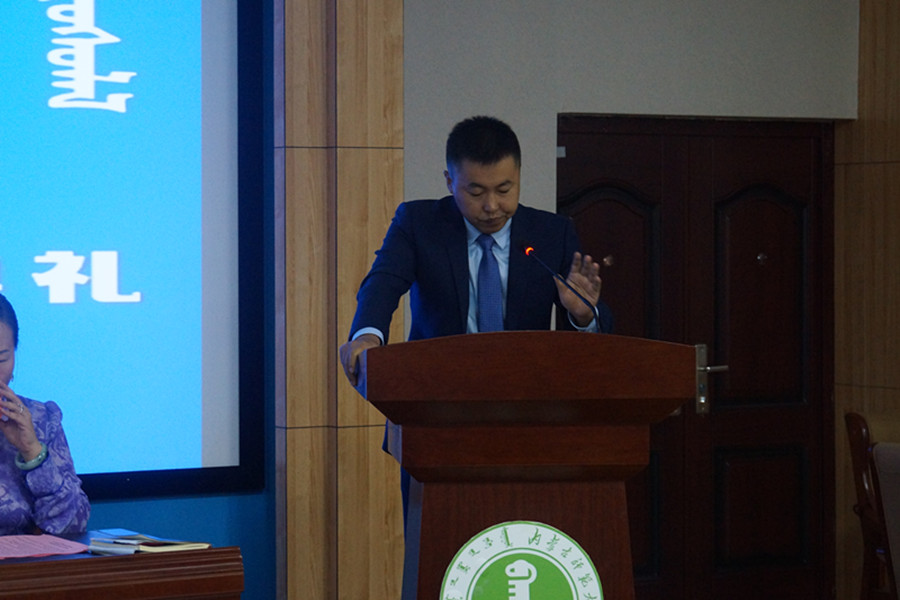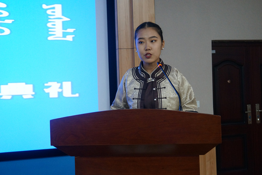 优秀毕业生、内蒙古自治区教学研究室教研员、中学高级教师毕力贡格日勒应邀出席仪式。2019级全体本科生、硕士研究生、博士研究生参加仪式。仪式由学院党总支副书记、副院长乌日其木格主持。