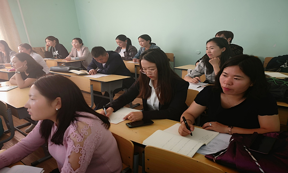 五位教师还与相关任课教师们就蒙古国国立教育大学蒙古语言文学专业本科教学的特色、亮点和重点等问题进行了充分地交流和探讨,并深入课堂听课、观摩学习。